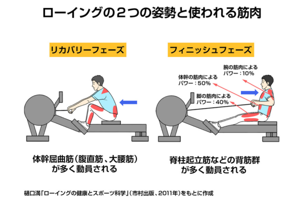 ローイングでは、このくり返しによって骨格筋により大きな負荷がかかり、その機能の向上につながるわけです。