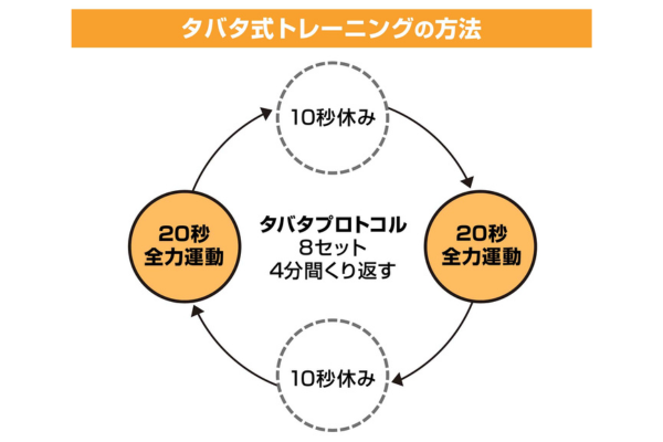 それが、立命館大学の田畑泉教授(運動生理学)が1996年にアメリカのスポーツ医学会誌で発表した「タバタプロトコル(タバタ式トレーニング)」といわれるものです。日本ではまだあまり馴染みがありませんが、海外では広く知られていて、トレーニングジムでも取り入れられているほどです。