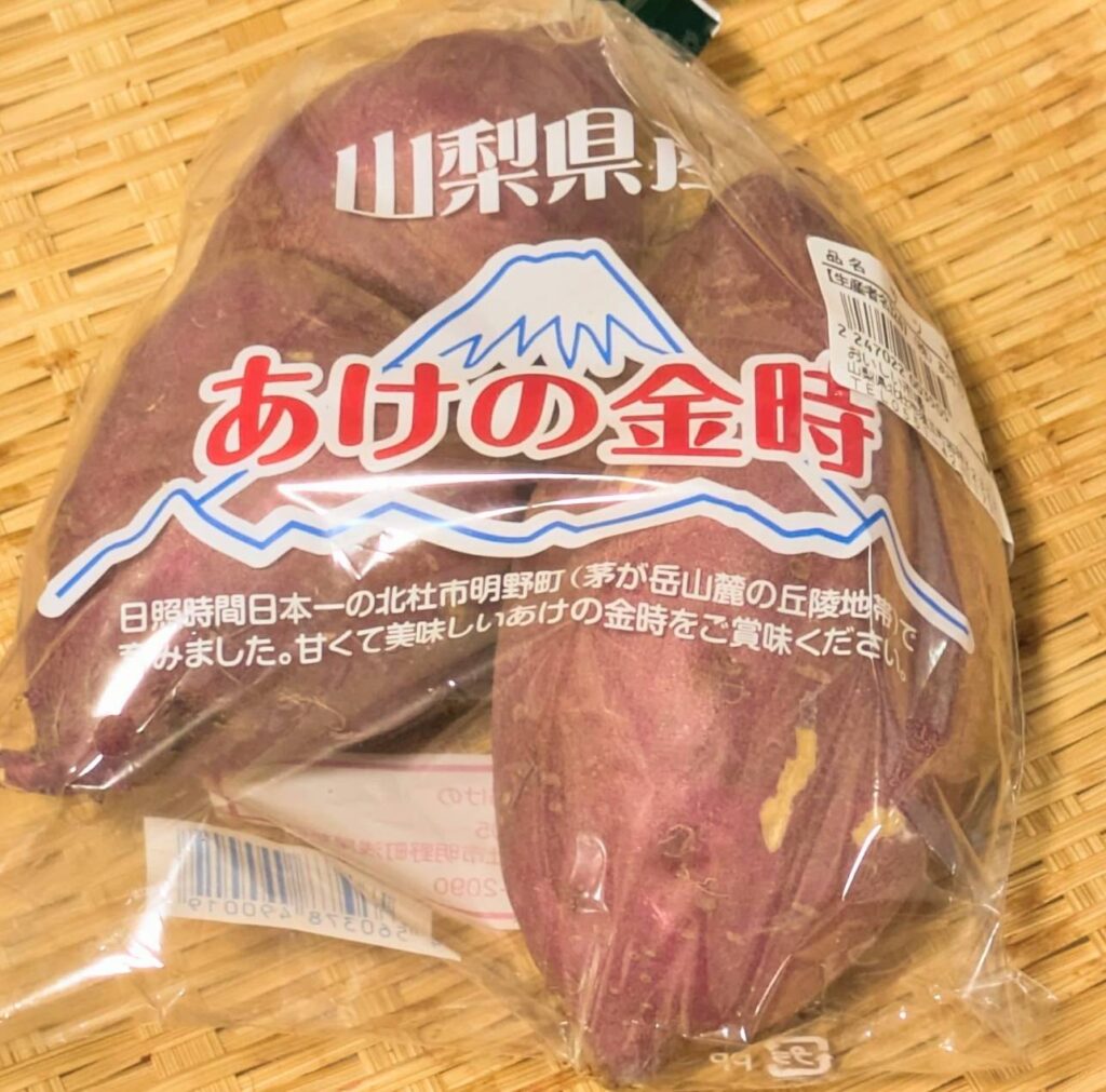なかでも北杜市明野町で栽培される 「あけの金時」 は、日照時間日本一(年間約2600時間)といわれる地域ならではの太陽の恵みを受けて育つブランドさつまいもです。あけの金時は、小ぶりで繊維が少なく、料理にもお菓子にも使いやすいのが特徴。