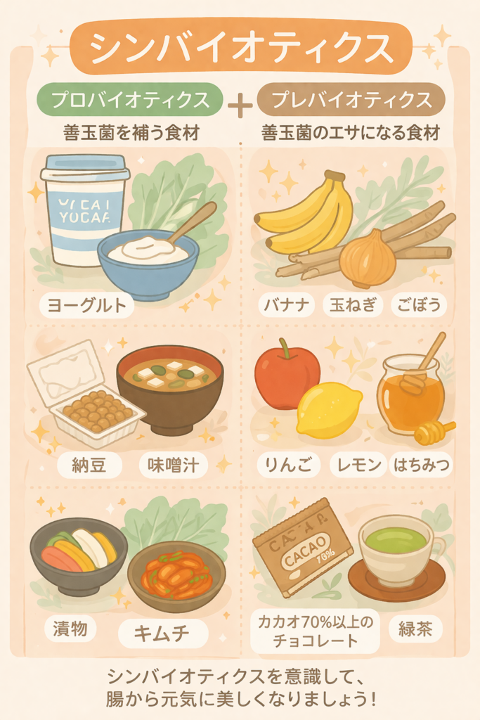 食物繊維(善玉菌の餌)と、納豆やヨーグルトなどの発酵食品(善玉菌を含む食材)を一緒に摂ることを「シンバイオティクス」と呼びます。例えば「めかぶ納豆」や「バナナ入りヨーグルト」は、腸内環境を整える最強のペア。単体で摂るよりも、免疫へのアプローチがぐんと高まります。