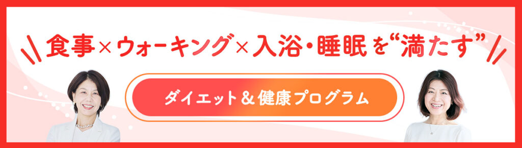 マイミータスの体質改善プログラムは、50代女性が無理なく・楽しく・確実に変われるよう、「食事×ウォーキング×入浴・睡眠」の4つの柱で生活習慣を整えるプログラムです。お一人お一人に寄り添い、オリジナルメニューを組み立てます。