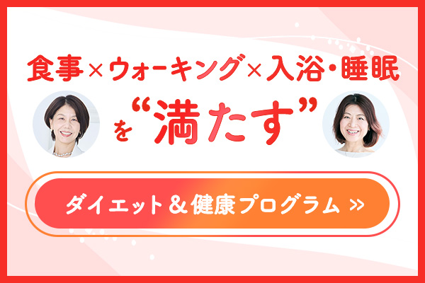 「食事×ウォーキング×入浴・睡眠」と4つの生活習慣を組み合わせた体質改善プログラム。お客様の嗜好や生活に合わせたオーダーメイドメニューが特徴です。講座、レッスン、個別セッション、フォロー&チェックなど、講師2人で手厚くサポートします。