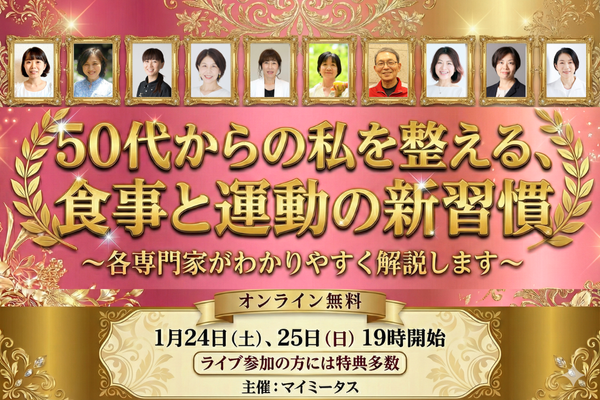 このセミナーでは、マイミータスで執筆する食事・栄養・運動の専門家が集まり、今日から無理なく取り入れられる健康習慣を、できるだけわかりやすくお伝えします。この2日間で、「健康のモヤモヤ」をすっきりクリアにしましょう。