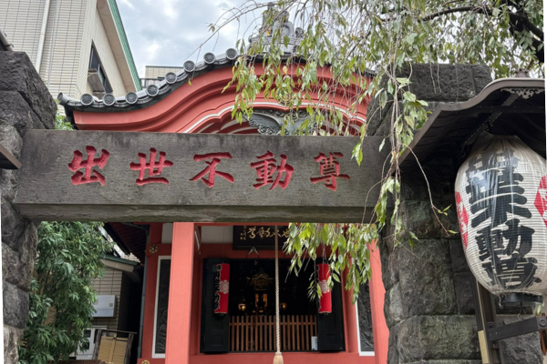 次は、霊厳寺の向かいに佇む浄土宗の長専院不動寺、通称「出世不動尊」です。入口にある「出世不動尊」の赤い字がかなりのインパクト。ご利益ありそうな気配がたっぷりです。