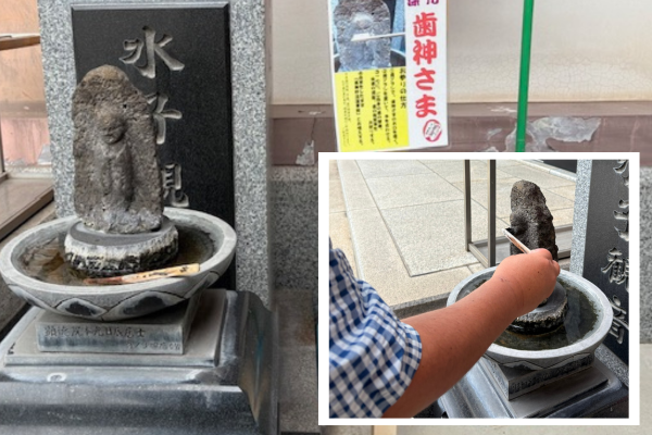 甘い水分を補給して体力回復。ここから開運ウォークも後半戦です。まずは「いつまでも自分の歯を保ち、楽しくお食事したい!」ということで、「歯神様(はがみさま)」が安置されている圓隆院へ行きました。