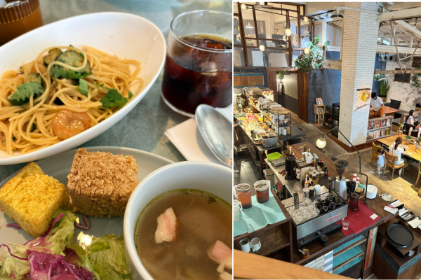 清澄庭園の近くにある開放的なおしゃれカフェで小休止をはさみます。
