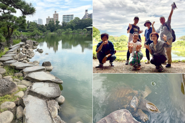 石を歩いている足音を聞いたのか、足元に集まってくるのが、鯉、亀、すっぽん。こんなにたくさんのすっぽんを一度に見たことがありません。