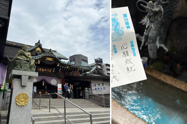 深川不動尊は、千葉県成田市にある「大本山成田山新勝寺」の東京別院で、不動明王が持つ「諸願成就」「厄難消除」「商売繁盛」などのご利益があるとされています。