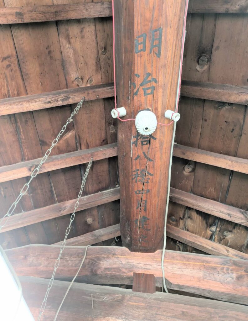 工房の屋根の梁を見上げると、明治時代の建物だと分かります。