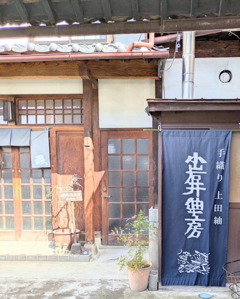 まだ冬の名残が残る空気の中でたどり着いたのは、上田紬の小さな工房。
