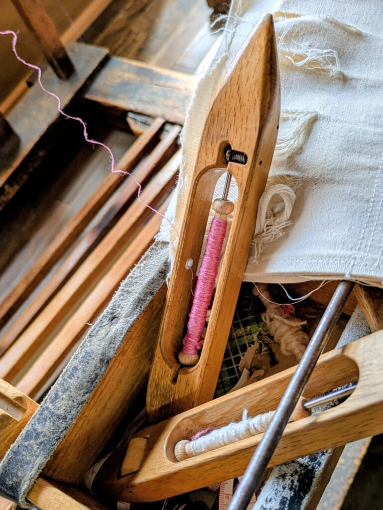 機織り機そのものは博物館でも見たことがあります。