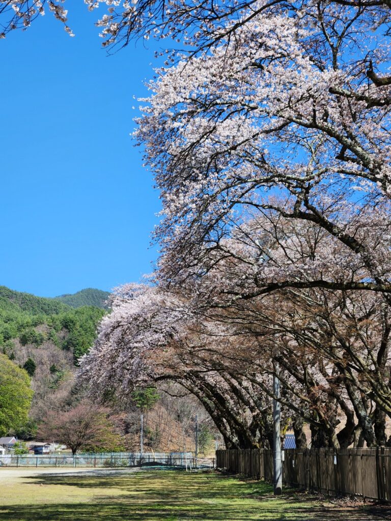 ここ津金学校でも、校庭の外側に大きな桜が並び、