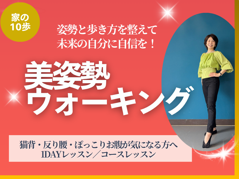 講師は、美姿勢と一生歩ける体を作る「家の10歩」歩き方講師の飯田みさ代(プレシャスウォーキング・インストラクター)が努めます。